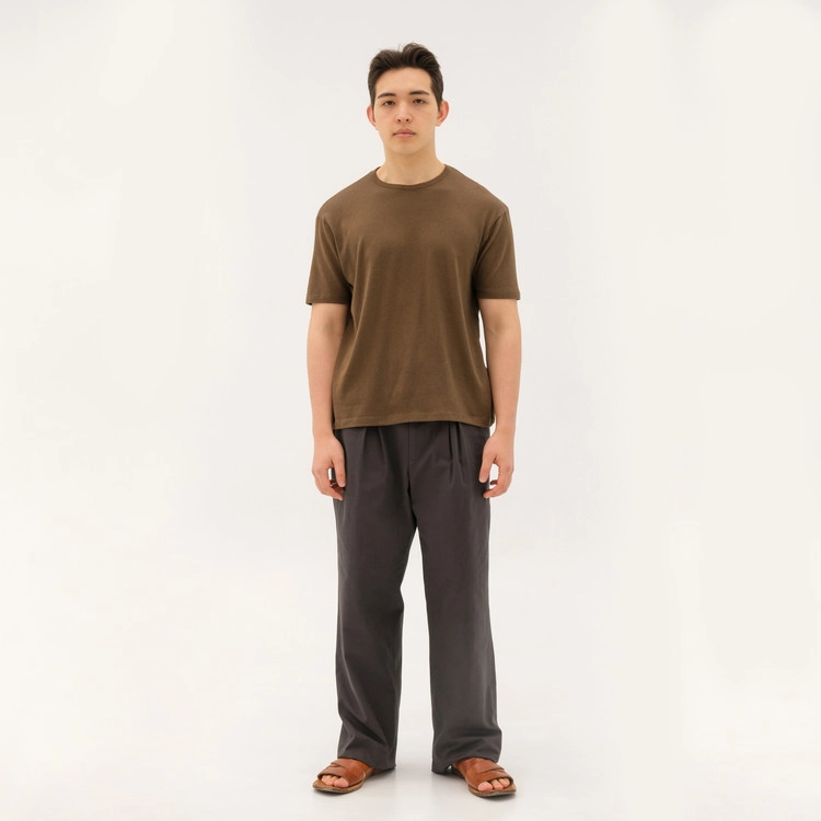 무릎 아래로 흐르듯 떨어지는 와이드 테이퍼드 실루엣이며, 내부의 플리츠 구조로 인해 착용 시 앞모습이 더욱 입체감 있게 보입니다.