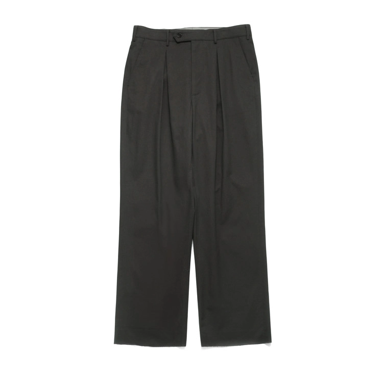 잿빛의 코튼 치노 클로스로 제작된 인버티드 박스 플리츠 팬츠입니다.